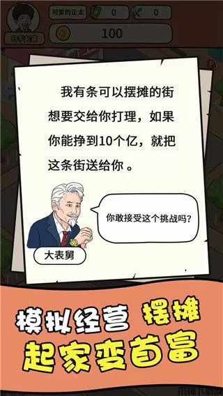 一起去摆摊手机版是一款趣味十足的Q版放置类经营模拟游戏,采用了最新的2D引擎技术打造,精美卡通的动漫风格、独特的游戏场景、诙谐的游戏内容、搭配上丰富趣味的玩法,不但汇聚了来自全国各地上百款美味小吃等你来解锁,满足你作为吃货所有愿望,可给予你更好的游戏体验。而且一起去摆摊手游中还以经营为核心,在这里你将成为一名优秀的小吃街管理者,不仅可通过旺铺招租寻找各种合作伙伴,雇佣厨师制作美食,吸引更多的顾客前来消费,从而发展地摊经济,创造良好的营业收入,让你自己的美食街不断扩张升级,帮助自己赚更多的钱。同时一起去摆摊游戏中还设立新颖的城市挑战赛玩法,支持大家通过摊位的升级的方式在不同商家间进行模拟竞技PK,解锁各种各样的成就,亦或是招募网红主播进行广告代言宣传帮助你吸引人气,加速发展你的美食街文化,让你小吃街每日都人来打卡,并成为吃货们的天堂哦!