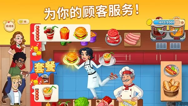1、游戏动画风格的游戏画面,让玩家沉浸在真实的餐厅经营氛围中,带给玩家无限的感动与惊喜。