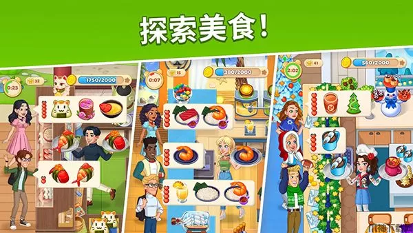 玩家可以通过餐厅设施和装饰的升级,来提高做菜的速度和菜品的价格等,每个地图都有不同的主题,在基础的玩法上在增加了游戏的新鲜感,难度适中也不会让玩家一直卡关,每一关完成足够多的订单,就能直接通关。此外,玩家在完成订单的时候,每个顾客都会有心情值,等待时间长的话,获得的收入就更少,所以做食物的时候速度要快。