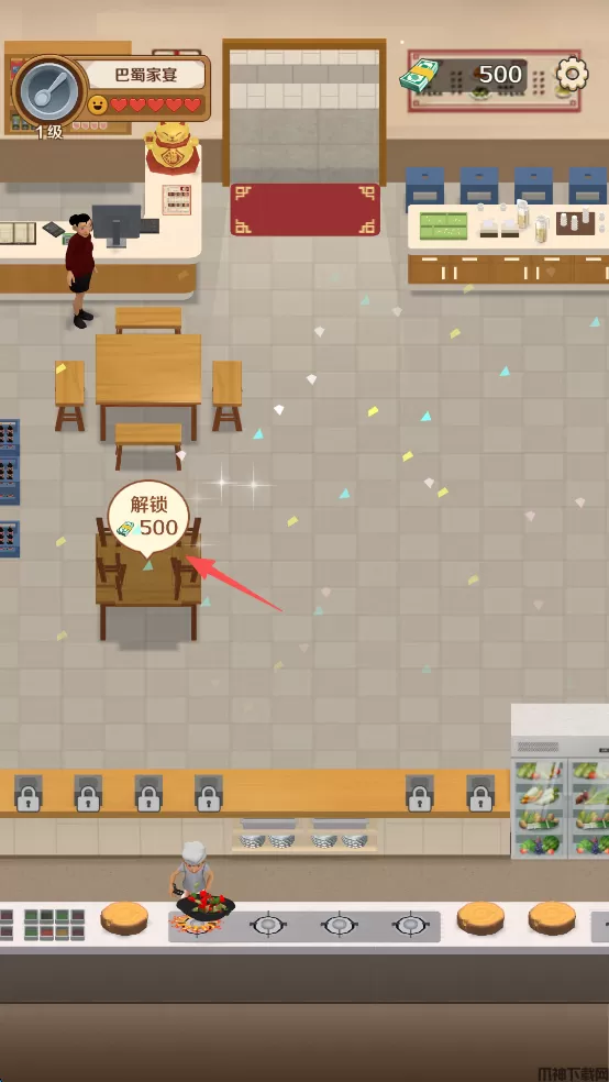 2、不用多想,直接解锁桌椅,这样可以接待更多的客人,来增加自己的收益。