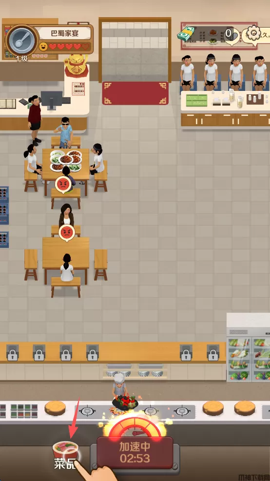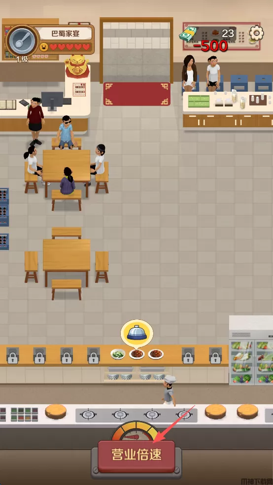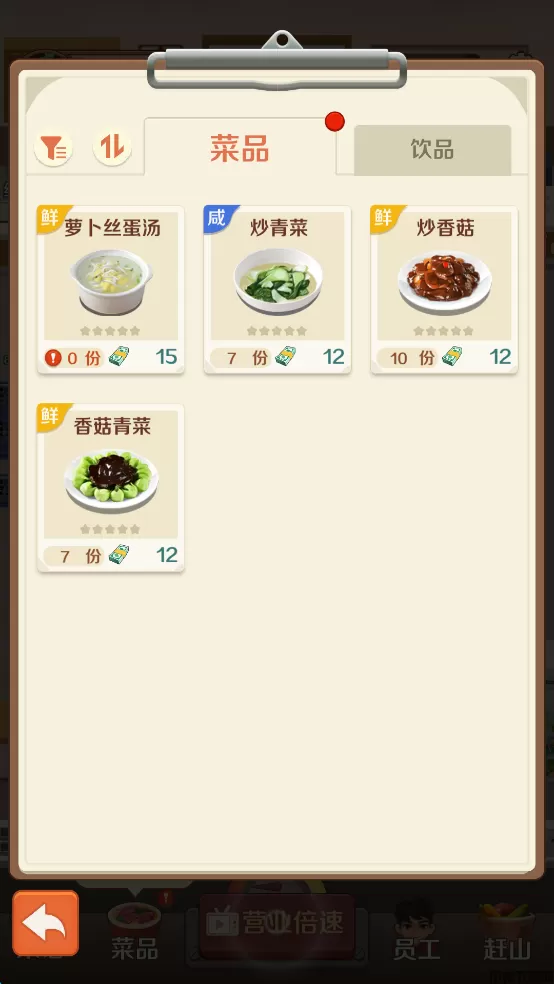 3、点击屏幕最下方的“营业倍数”,增强员工工作的积极性,更快得做菜,上菜。
