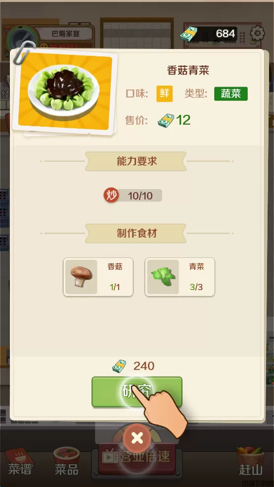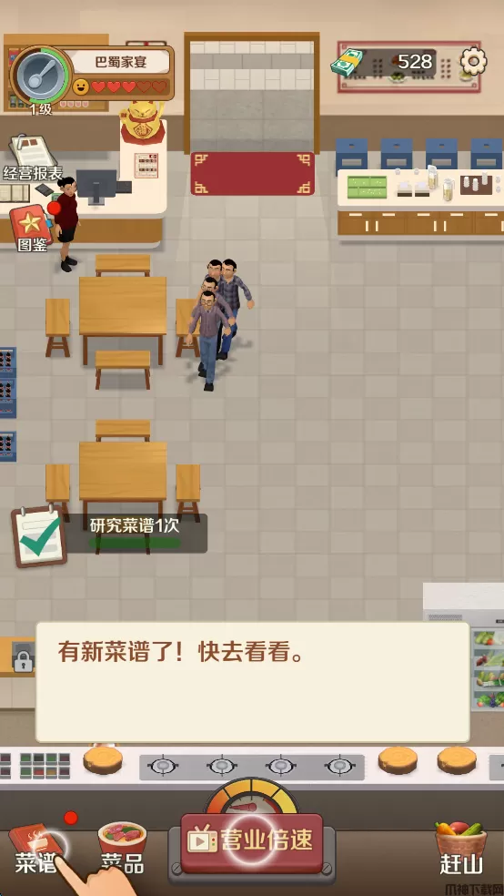 2、玩家开发出更多新的菜品,增强店铺的知名度。