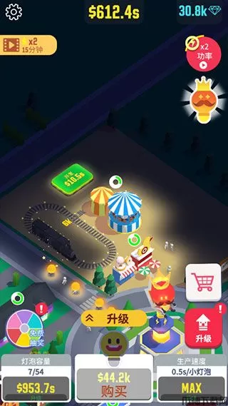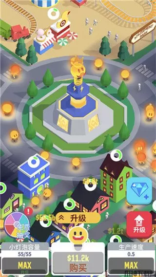 2、通过升级灯泡王国来获得更多的小灯泡,建造各种建筑物来收获新的收益