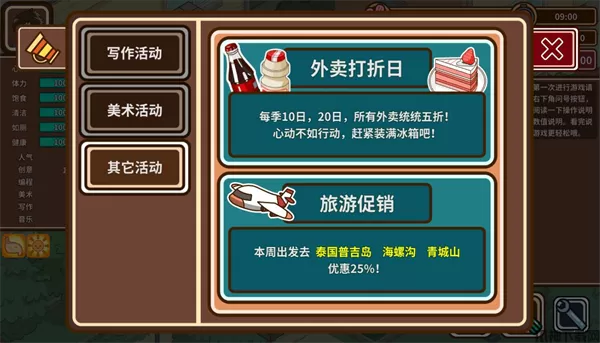 2、在前期因为满足不了连载条件的情况下,玩家们只能接取一些稿件零活来获取资金。这些稿件一般都是有一些要求,比如要你去画一个海报,需要创意1000,美术1100。创作的时间大概6小时,截稿日是6天后之类的。如果属性上不满足的事无法接取稿件的。
