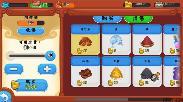 一、游戏中的商品种类一共有20种,低价买进高价卖出就是商人积累资本的重要手段,因此必须对这些商品有足够的了解,在介绍商品之前笔者还要说明一下游戏中的商品单位,船只的载重量都是有上限的,用单位“桶”来表示,因此绝大部分商品的单位也是桶,但是对于稻谷、木材等商品,桶这一单位未免太小,于是游戏规定了另一个单位“箱”,一箱货物等于10桶,从这里我们也应该明白,船只上装载以桶为单位的货物可以节省大量的空间,所获得的利润也要高很多。在20种商品中: