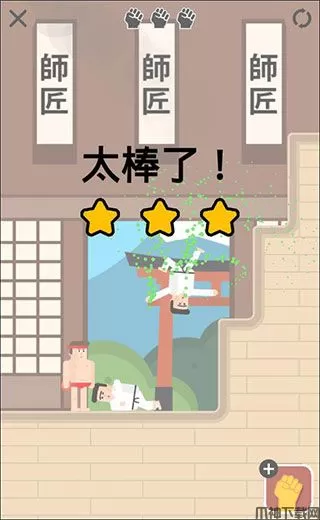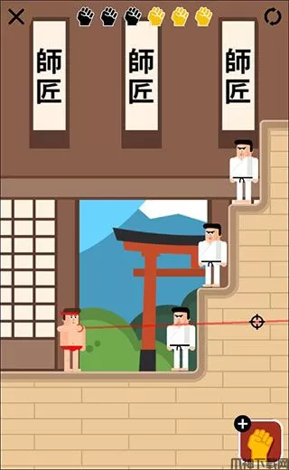 4、这关也是非常简单,三个黄色标识表示我们可以开三枪,一枪一个敌人即可,只要剩余三个黑色的拳头即可3星过关。
