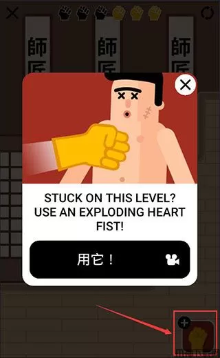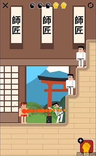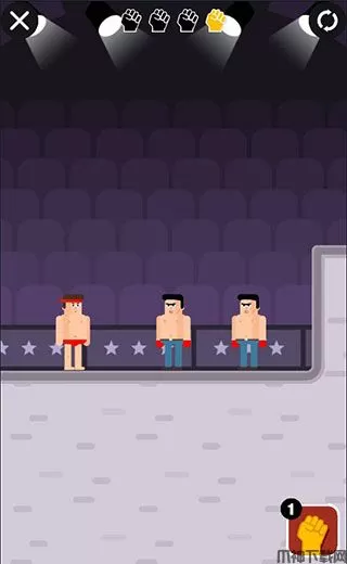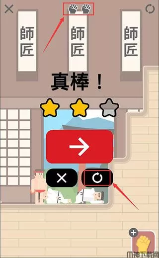 1、进入格斗先生游戏的关卡后,我们可以看到正上方有着6个拳头标识,其中3黑3黄,3个黑色的拳头会影响通关评分,黄色拳头则不会。