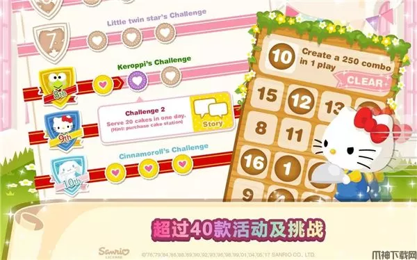6、此外,我们还可以查看我们当日的收入,还可以招聘30个可使用的三丽鸥角色,以及挑战各种任务。