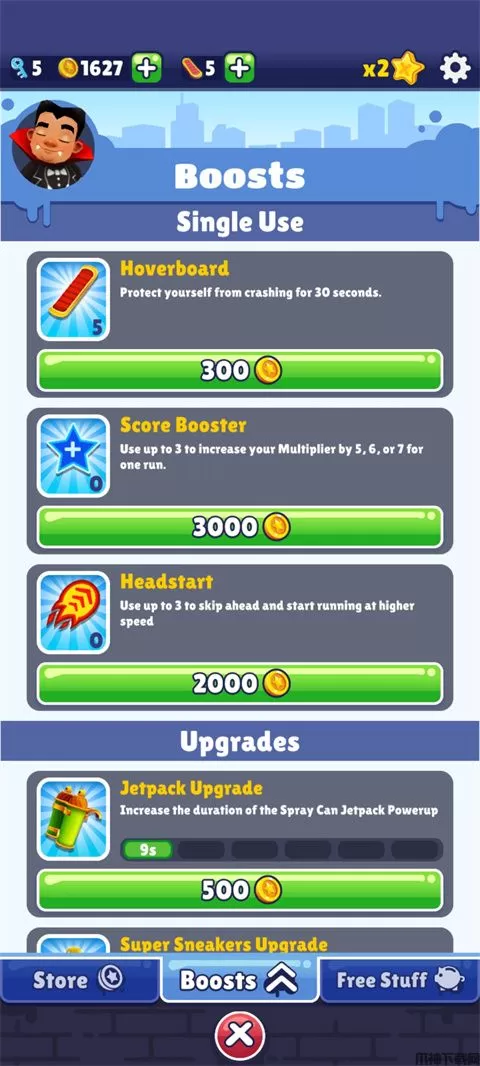 火车骑士手游内玩家需要通过简单的上、下、左、右划来躲避障碍和迎面而来的火车,其中你还可以捡到一些道具有磁铁、得分翻倍、超级跑鞋和喷射器,帮助主人公躲避脾气暴躁的警察和他的狗的追捕,需要注意的是在空中也可以左右改变方向。游戏中还具有一个任务系统,当玩家完成指定的任务可以获得金币,这些金币去商店购买角色、滑板皮肤还有背饰、滑板、得分倍增、超级喷射起跑,以及提升道具持续时间。有兴趣的小伙伴不妨来下载火车骑士手游畅玩一番吧!