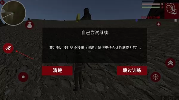 8、按住左边的按钮即可进入冲刺状态(提示:跑的更快会让你精疲力尽);