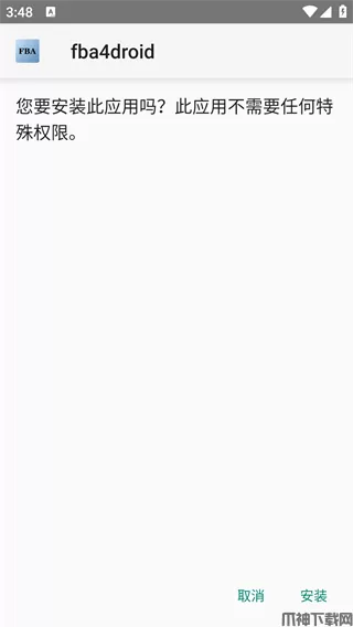2、系统会提示需要安装名为fba4drioid的应用,点击安装即可。