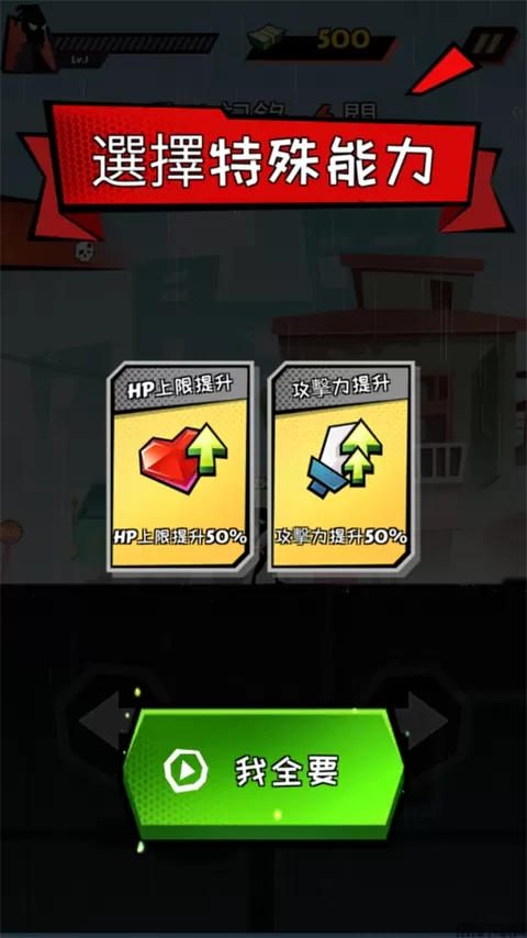 1、玩家进入关卡之后,会出现能力选择,玩家可以根据自身的属性来进行选择一个