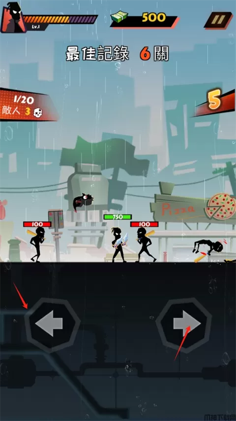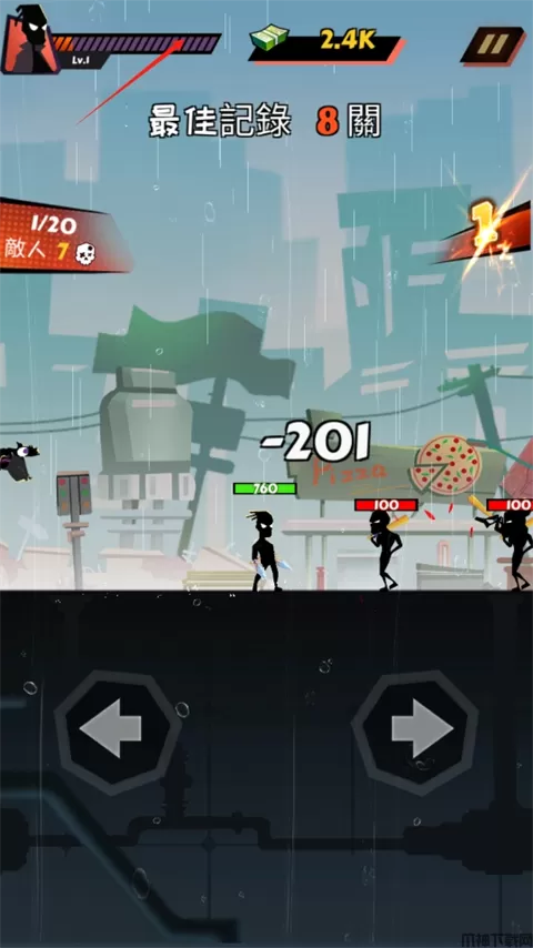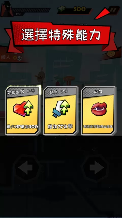 2、点击左键角色会向左移动并攻击左边的敌人,同理右键则是向右移动并攻击右边的敌人