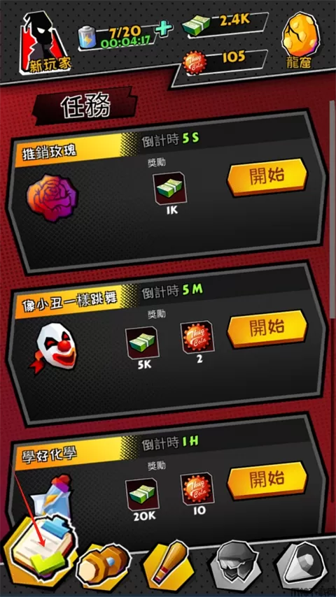 5、主页面左下方还有任务页面,玩家可以通关完成任务来获得奖励