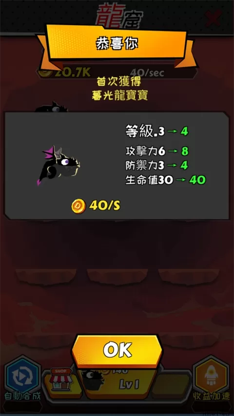8、龙宝宝会一直生产金币,龙宝宝等级越高收益越多