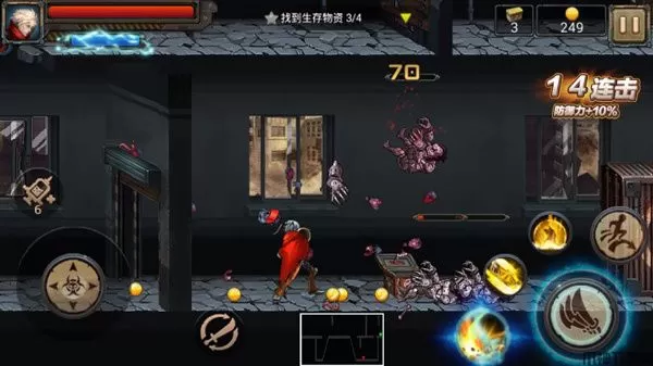 玩法技巧,操作过程中需要巧妙的利用跳跃来躲避敌人的攻击,两连跳时不要连续点得太快,不然第二次会跳不到。在攻击敌人的时候会集满能量,等蓝色能量条满了可以出发大招,对全屏敌人进行攻击,威力巨大,在打BOSS的时候想要更多的连击就需要左右来回跑动攻击,注意不能只顾着走来走去,要对敌人一边攻击一遍移动,拉开距离攻击,没有小怪了就用大招攻击BOSS保证可以继续连招。