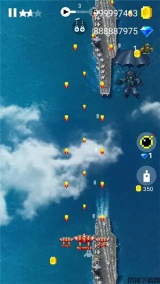 6、战斗机的增强和升级进化可以解锁更多的武器和装备,并可以增加生命值、速度、火力。