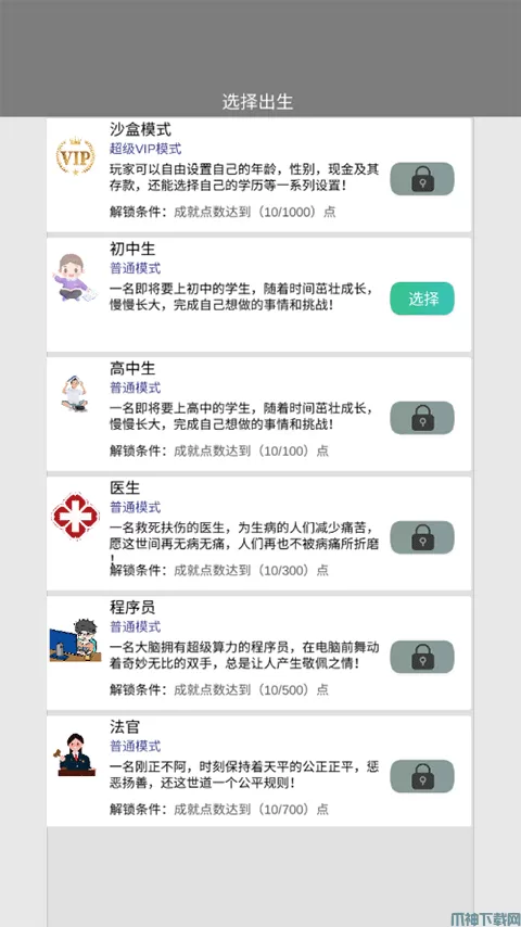 1、先选择出生,成就点数不足,只能从初中开始。
