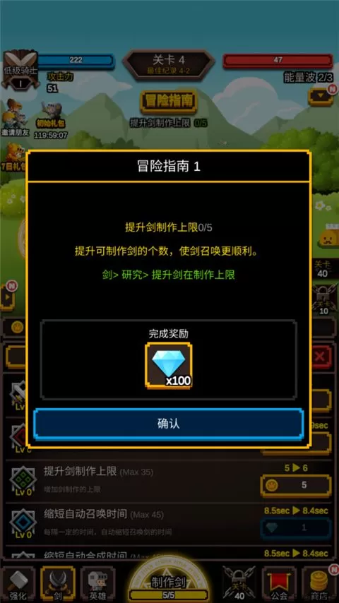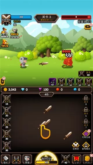 将自动制造的剑放到合成面板,然后将它们拖到相同的剑上,然后将它们合成以制作更坚固的剑。通过无尽的合成,召唤更加强大的宝剑,以击败即将来临的敌人。