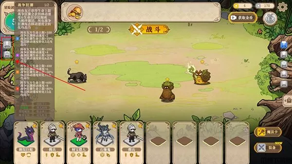 7、游戏卡牌英雄都有独特羁绊,玩家点击左侧即可查看羁绊属性,自由搭配。