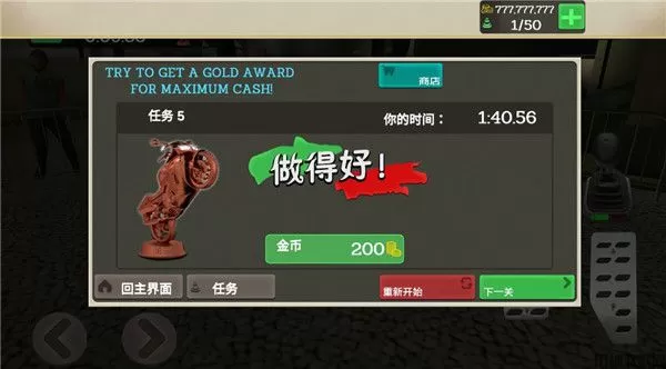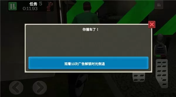 5、在驾驶车辆的时候我们需要小心不要撞到建筑物或者是行人,不然会导致任务失败,我们可以使用道具时间回溯,继续游戏