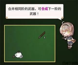 2、通过点击锻造,生成两次一阶武器后,手指拖动武器合成。这样,我们就得到了一把二阶武器。然后,通过将两把二阶武器合成,我们就可以得到一把三阶武器。