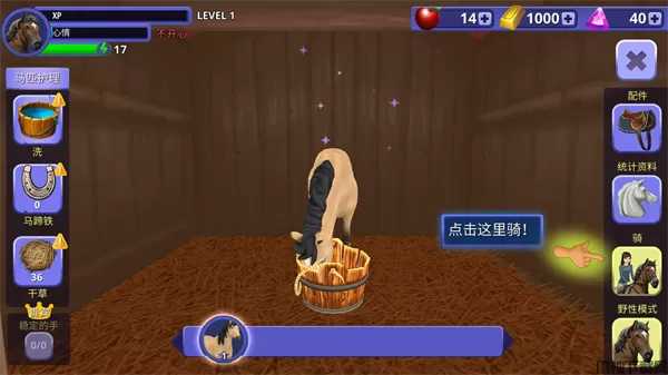 游戏提供了各种任务、活动和故事情节,让玩家在马术世界中逐步发展并提升技能,你可以前往养马场购买马匹,照顾它们的需求,如喂食、清洁和刷洗,通过与马匹建立亲密的关系,你可以培养它们的技能,并参加各种马术比赛和挑战,如障碍训练、马球比赛和马术表演等。