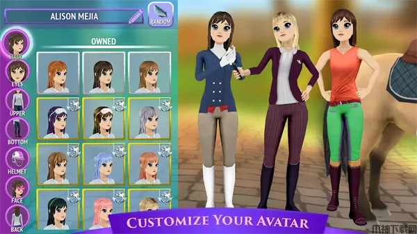 在骑马故事中,你可以养育自己的马匹,你可以前往养马场购买马匹、照顾它们的需求(如喂食、刷洗)并培养它们的技能。
