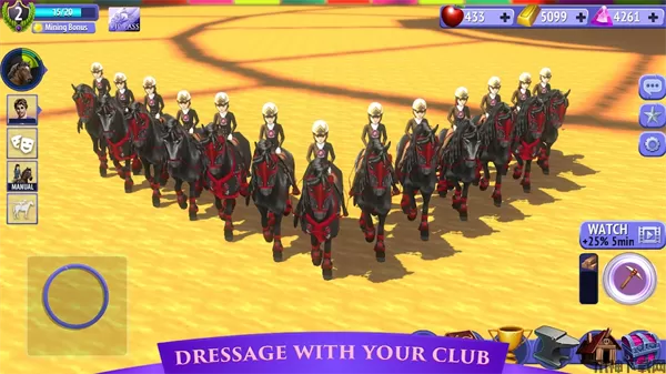 此外,游戏还提供了社交互动的功能,玩家可以邀请朋友一起玩游戏,加入俱乐部和团队,并与其他玩家进行交流。总而言之,骑马故事是一款能让玩家尽情体验马术世界的游戏。
