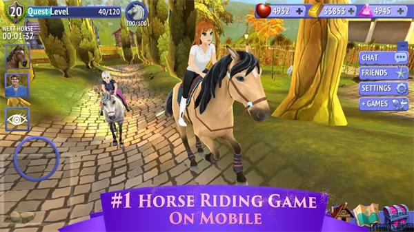 骑马故事Horse Riding Tales,又被称为马术之旅,是一款以马为主题的手机游戏,玩家在游戏中将扮演马术爱好者,在一个开放的世界中体验马匹养育、训练和马术竞技等活动。在游戏中,你可以养育自己的马匹,参与各种马术比赛和挑战,探索美丽的景观,并与其他玩家互动。