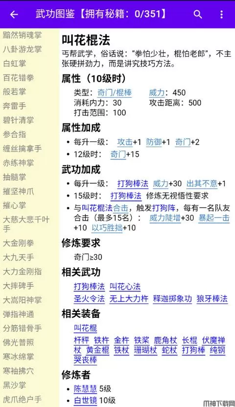更新“连天十三峰”、“嵩山剑法”、“大嵩阳神掌”12级后效果。
