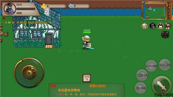 3、然后进入游戏,需要完成下方任务,去田里收获粮食;