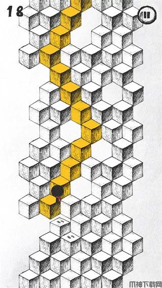 1、阶梯英雄,点击屏幕转换跳跃方向,没有跳跃到方块上面则失败。