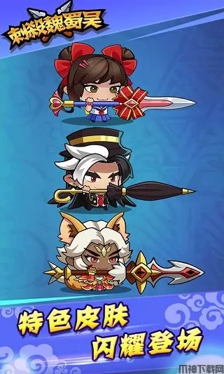 2、游戏里的角色皮肤采用了Q版二次元卡通动漫画风设计,还原多位经典三国英雄。