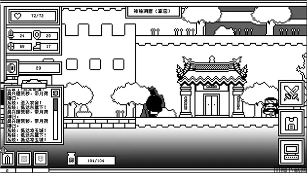 1、当前人物所站的地方是封魔塔在凉玉城的入口,点击屏幕最右边的三个大键的第一个也可以进入封魔塔;左手边坐在地上的那个老头是传说中会降龙十八掌的丐帮帮主--粥星星!