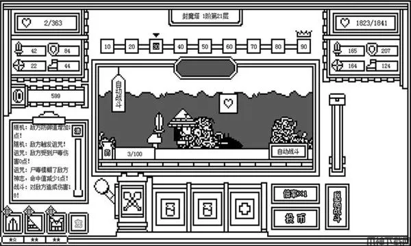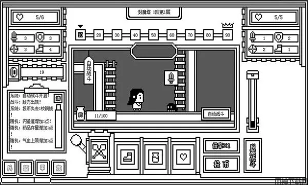 下一层的封魔塔是一款复古像素风养成手游,玩家作为勇士需要出发前往高塔,打败被封印在其中的怪兽,不断前往下一层,直至最高层。