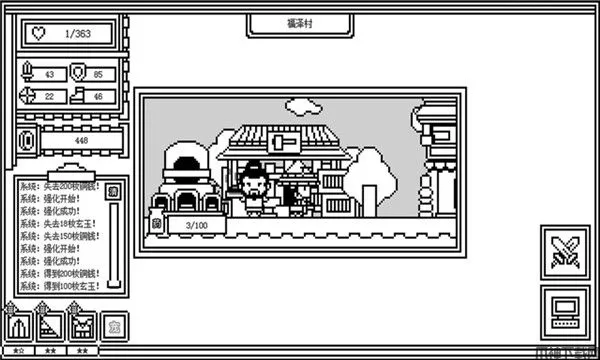 3、左边这个小房子是土地公的家,里面有个土地公,如果李愿意贡献出李自身的一百点金血(所以不够一百点的银就不要进去了)你就可以得到一只土地公。