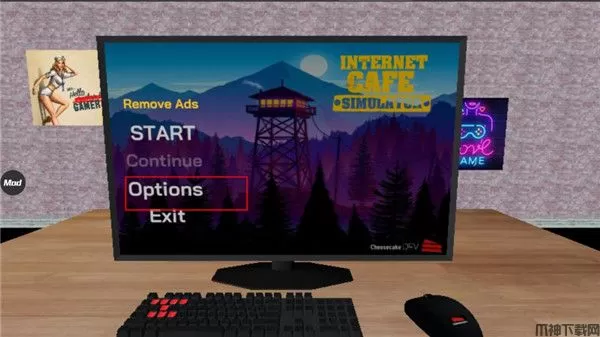 1、首先下载网吧老板模拟器内置功能菜单版游戏之后,打开点击options;