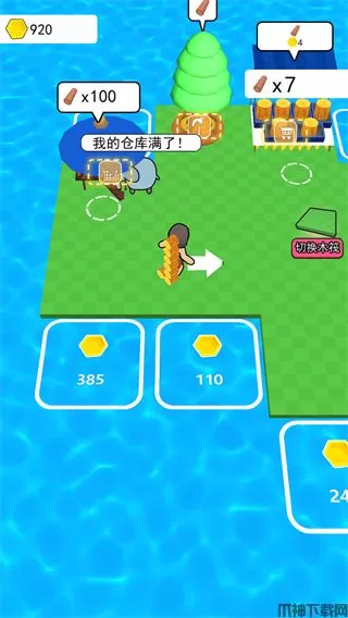 2、玩家可以通过伐木来收集木材,这些木材可以用来在商店换取金币。
