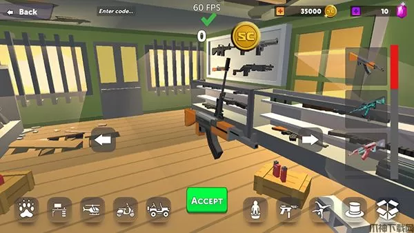 玩家点击左边的SHOP即可进入商店,可以购买武器、车辆等物品。