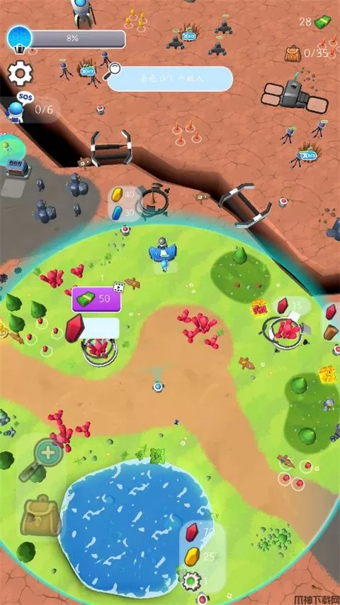 5、通过升级自己的基地,可以延长你的生命泡泡,获得更多的区域;