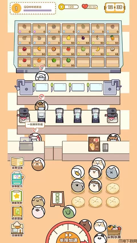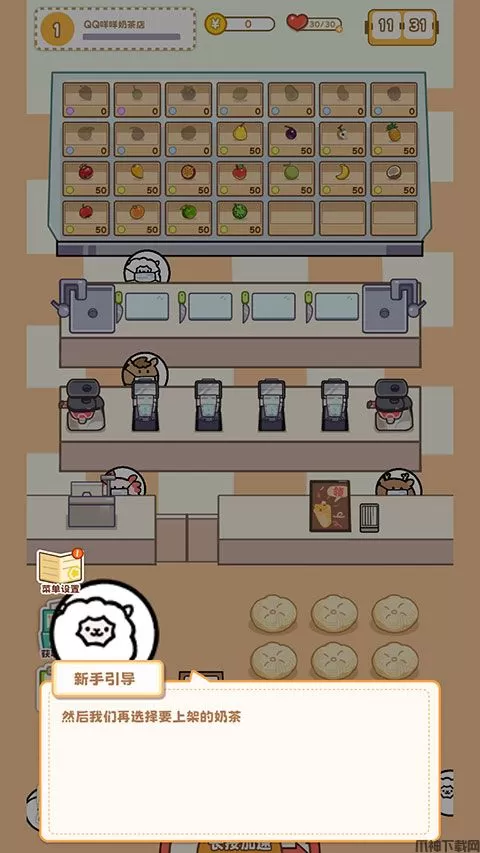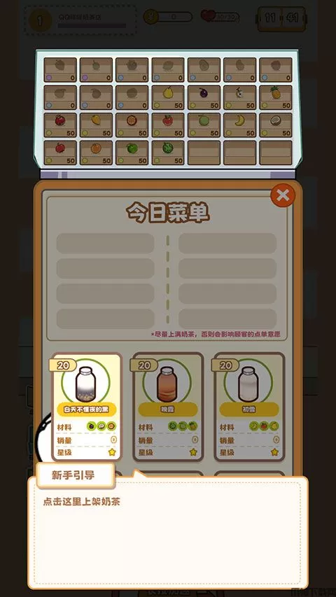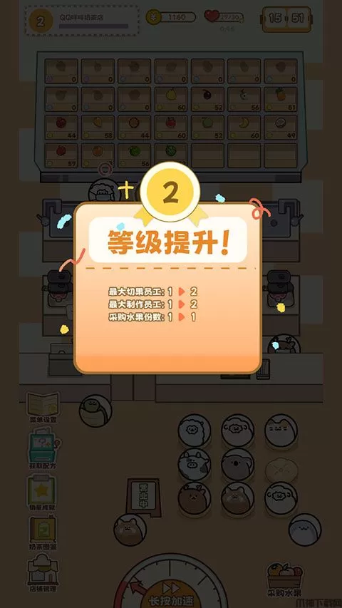 8、随着经营活动的进行,我们的奶茶店也会获得【升级】,升级可以解锁更多营业员工位和水果采购数。
