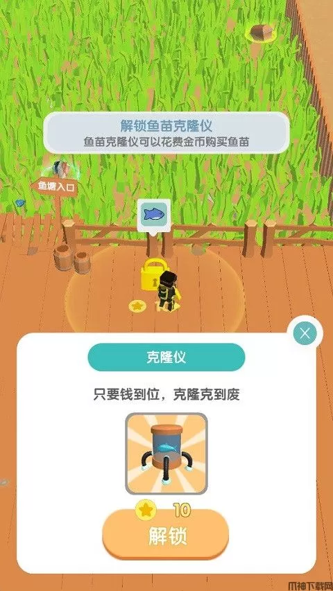 1、首先通过新手教学解锁鱼苗克隆仪,鱼苗克隆仪可以花费金币购买鱼苗。