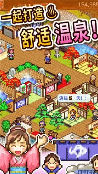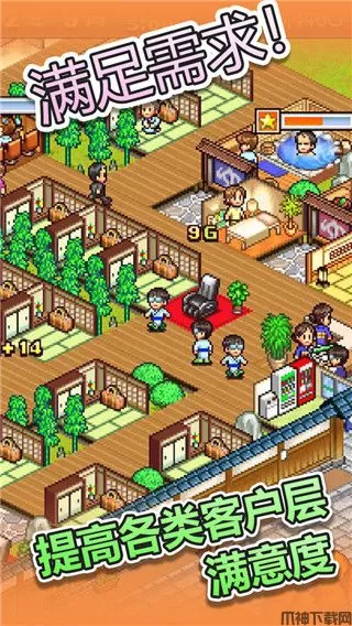 温泉物语手机版是一款非常休闲的模拟经营手游。本作游戏无论是从游戏人物、场景、到建筑等,都依旧延续了开罗游戏的一贯设计,以经典的像素风动画效果呈现,人物卡通呆萌,场景精美细腻,能够给于大家既熟悉又与众不同的游戏体验。