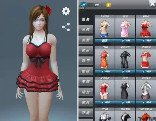 上图中:“衣服”的图标,可以买到所有小美的服饰,最后一档充值可以购买到您所需要的钻石。