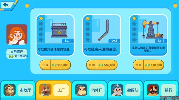 2、利用自己的设施来开采你的第一桶金,赚取收益后就可以扩大你的工厂规模,收取更多的利润。