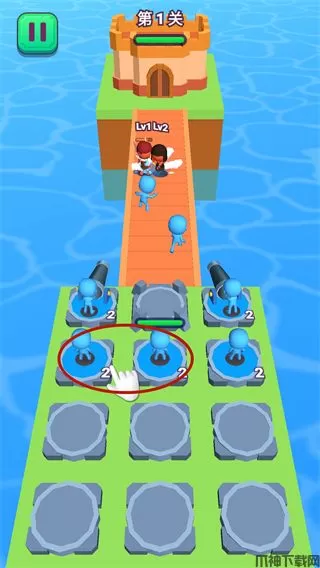 6、将两个相同等级的小人拖动到一起可以进行合并升级,提升战斗力。