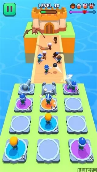 合成攻城队是一款卡通风格的合成塔防小游戏,玩家在游戏中需要保卫好自己的塔,通过不断的合并和升级士兵,增加军团的战斗力,攻占对方阵营,取得最终的胜利,玩家在游戏中将面临各种不同的敌人,每种敌人的攻击方式都不相同,他们会从四面八方进攻,所以你必须合理的安排每一个士兵的站位,尽早的在炮台位置安排士兵能在前期更多的消灭远处的敌人。