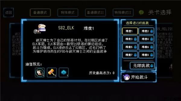 3、选择你要玩的模式,比如普通模式、特殊模式等,然后选择关卡;
