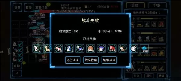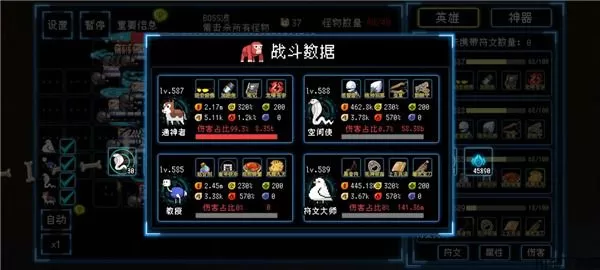 神器,快乐水回蓝,神的笔记加暴击,其他的神器随意,稳定过关。运气好装备凑出来,可以开局就三倍加速,运气不好,攻击叠不到很高,运气好的话,叠个一万攻击小菜一碟。暴击叠满就是三万。
